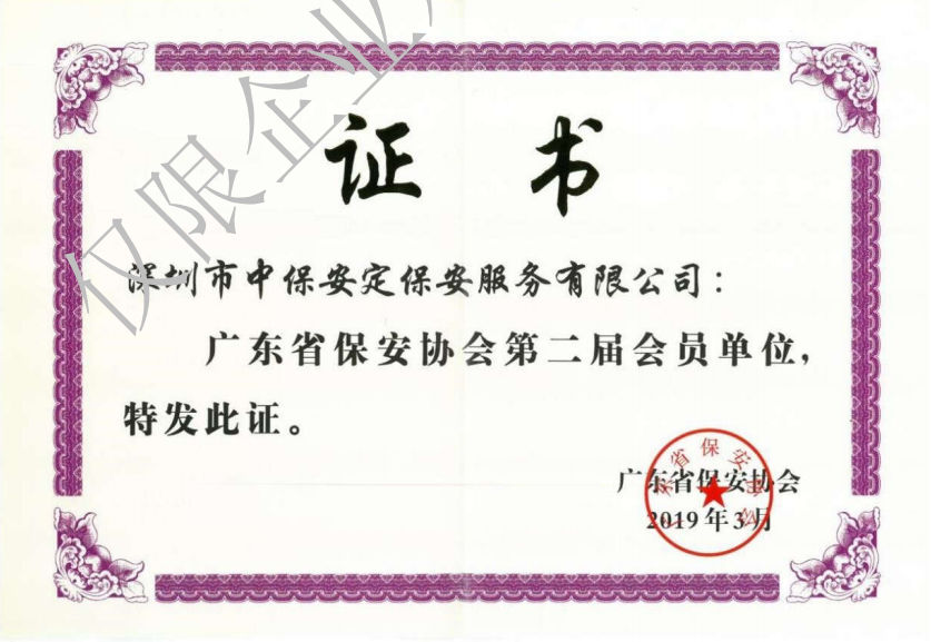 中華保安企業(yè)聯(lián)合會(huì)副會(huì)長(zhǎng)單位保安協(xié)會(huì)、廣東保安協(xié)會(huì)會(huì)員單位